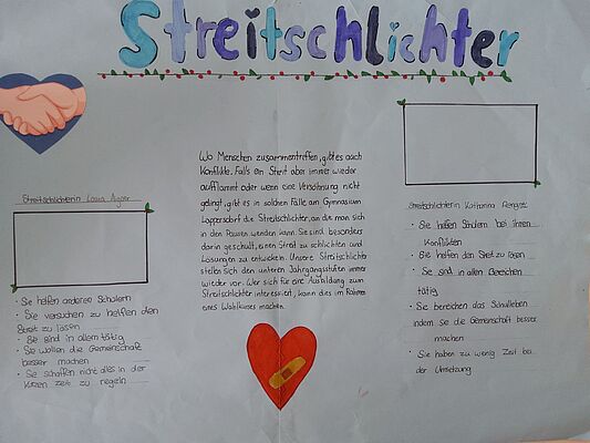 Auf die Wahl deutete bereits am Vortag die Gestaltung des Eingangsbereichs im Schulhaus hin, der mit großen, bunten Transparenten auf die Wahl aufmerksam machte.