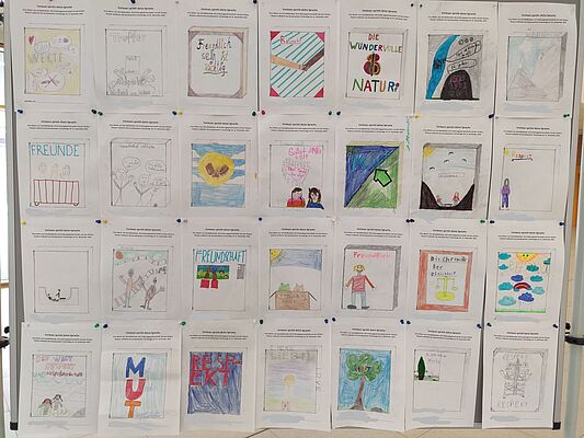 Auf die Wahl deutete bereits am Vortag die Gestaltung des Eingangsbereichs im Schulhaus hin, der mit großen, bunten Transparenten auf die Wahl aufmerksam machte.