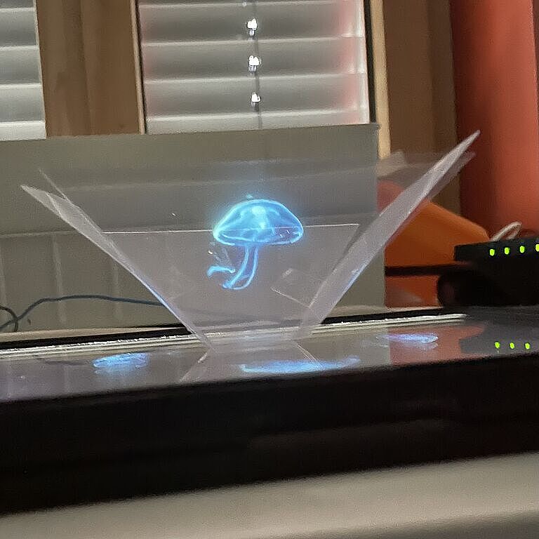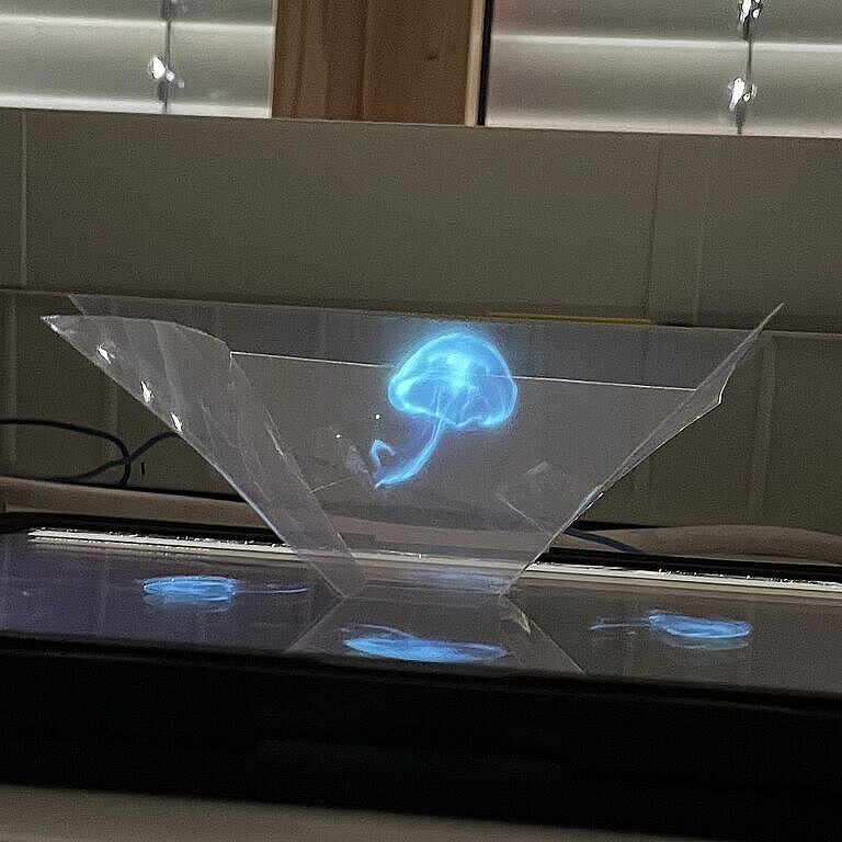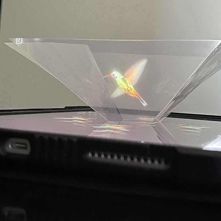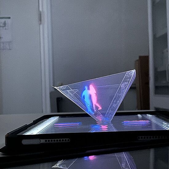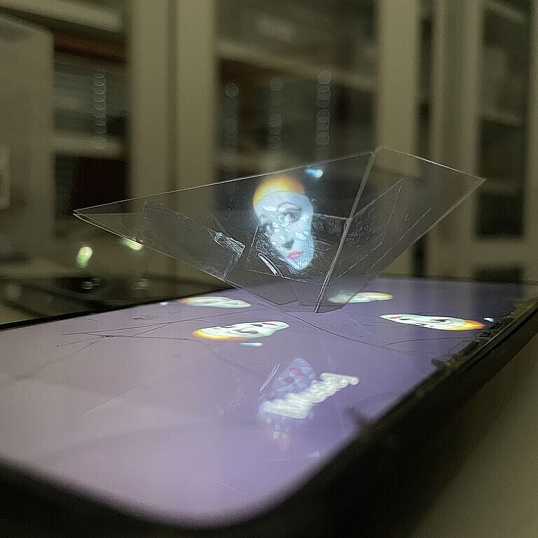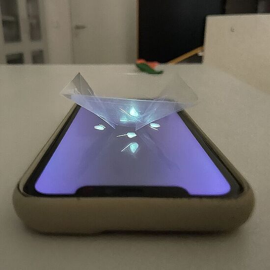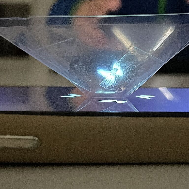Weil es einfach so schön anzusehen war, möchten wir auch mit Ihnen die „Hologramme" teilen, die Schülerinnen und Schüler der 8. Jahrgangsstufe im NTG-Zweig in den Profilstunden gebaut haben. Bei diesem überraschende Effekt (dem sogenannten Pepper's Ghost) entsteht mithilfe einer Folienpyramide und einem Smartphone eine täuschend echte 3D-Illusion.