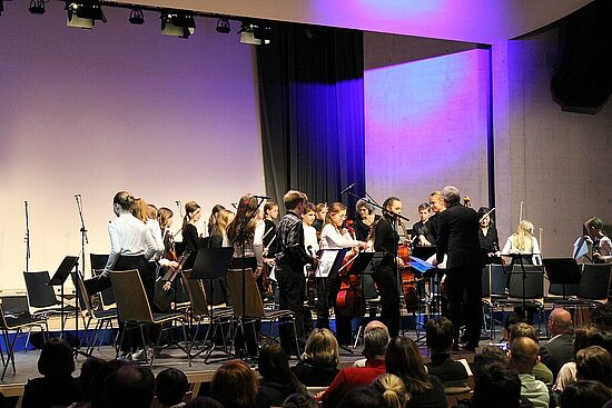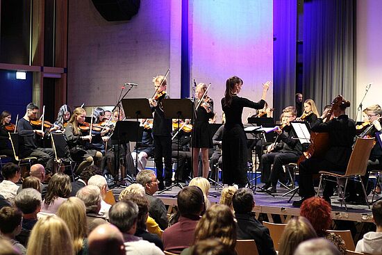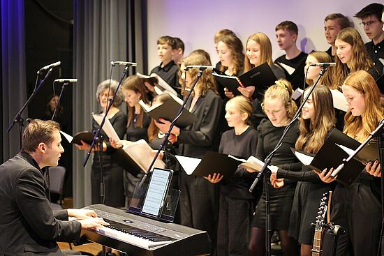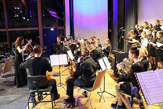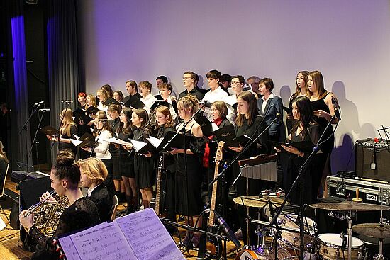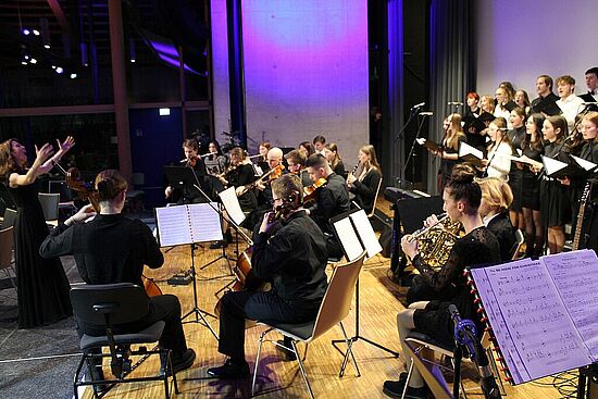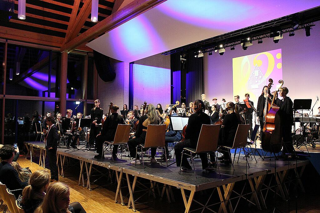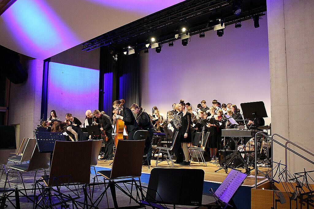 Am 20. und 21. Dezember 2023 luden das Gymnasium Lappersdorf und das Johann-Michael-Fischer-Gymnasium Burglengenfeld zu einem gemeinsamen Weihnachtskonzert in das Aurelium in Lappersdorf ein. An beiden Abenden spielten die weit über 200 jungen Musikerinnen und Musiker aus beiden Schulen vor einem jeweils voll besetzten Aurelium. Die Kooperation der beiden Gymnasien hat bereits eine lange Tradition - vor allem in Form von gemeinsamen Orchesterfahrten. Nach einigen Jahren gelang es, wieder ein schulübergreifendes Konzert vor Weihnachten auf die Beine zu stellen. Den Zuhörerinnen und Zuhörern wurde ein wunderbarer Musikabend mit vielen Highlights geboten. Neben beeindruckenden solistischen Darbietungen gab es Aufführungen von verschiedenen Ensembles. Die Kinder und Jugendlichen beider Schulen hatten sichtlich große Freude daran, bei mehreren Stücken zusammen auf der Bühne zu musizieren und weihnachtliche Stücke in vollem Klangkörper darzubieten. Herzlichen Dank allen Mitwirkenden!