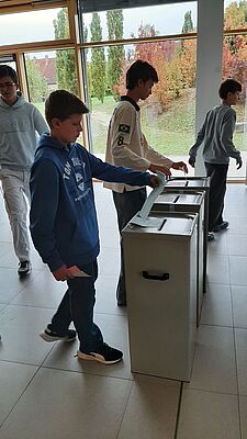 Alle Schülerinnen und Schüler von der 5. bis zur 13. Klasse hatten dann am Wahltag während des gesamten Vormittags die Möglichkeit, im zentralen Wahllokal, zu dem die Mensa umfunktioniert...
